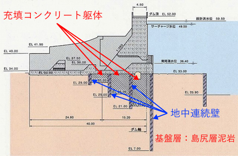 皆さん!スメクタイトや黄鉄鉱を含む第三紀の泥岩として、沖縄島中南部に分布する「島尻層群泥岩」が知られていますが、スレーキングによる細分化、吸水膨張による強度低下が要因で、斜面崩壊の事例も多くみられるようです。島尻泥岩と言えば、沖縄県那覇市を流れる安里(あさと)川にある金城ダムは、スレーキング現象が顕著なこの泥岩を基礎岩盤とするため、そのままでは、水圧に支えられないことから、基礎岩盤に格子状に地中連続壁を段階施工し、その内部をコンクリートで置換えてダム基礎とした「掘り込み式」の重力式コンクリートダム型式ですが、首里城に近接しているため、周辺景観に配慮して、堤体に「琉球石灰岩」を張付ける工夫をしているユニークな治水用ダムとして有名ですよ!