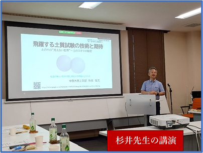 1日目は、北陸の森川専務理事のご挨拶に始まり、試験室の見学、物理試験の意見交換、メインとして中部大学工学部都市建設工学科の杉井俊夫教授のご講演「飛躍する土質試験の技術と期待」でした。ご講演で印象強かったのは粒度の沈降分析において沈降分析用質量が影響していないのかという点において、去年度の技能試験のデータを解析されており、粘土分が試料量に影響を受けることを懸念しておりました。JISでは試料量の規定は下限値は設定してあるのですが、ASTM(アメリカ材料試験協会規格)では上・下限値が定められており、上限値がないのは改めて考えさせられるところでした。他にも自動沈降分析試験装置のご紹介もあり、24時間の計測が最短2~3時間で行え、人為的誤差も減らせるそうです。試験所間でのズレもなくなり標準化できれば素晴らしい装置になるのではないかと感じました。夕方からは懇親会もあり、北陸の皆様を始め、各組合の皆様と親睦を深められました。